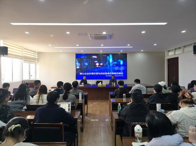 11 月 4 日下午,应工商管理学院邀请,南京大学商学院党委书记刘春林教授在我校仙林校区德济楼 408 会议室作“核心企业环境引领与供应链成员策略性响应”专题学术讲座。本次讲座由工商管理学院院长万绪才教授主持,工商管理学院师生代表共同参加。
