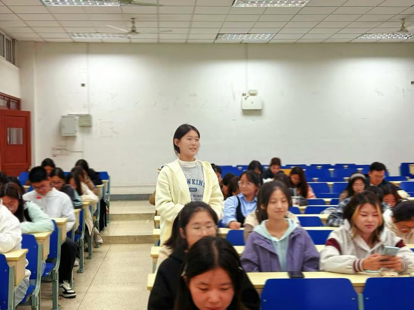 在分享环节,安徽片区助理团成员、应用数学学院胡可同学结合自身经历,介绍了参与“母校行”活动的流程与收获,鼓励新生们踊跃报名,成为南财故事的讲述者和传播者。随后,2025级新生代表陈子诺同学发言,充分表达了对大学生活的憧憬与对家乡的热爱,呼吁同学们珍惜同乡情谊,携手成长,共同进步。