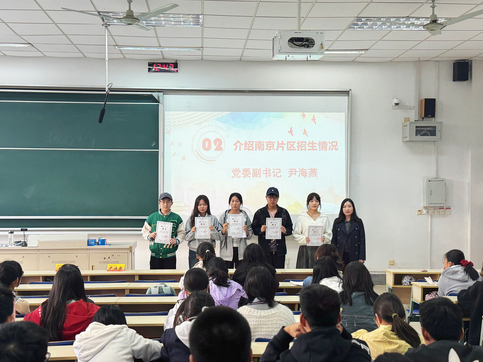 10月22日中午,以“承金陵底蕴 述南财故事”为主题的南京片区2025级新生交流会在德济楼Z2-118教室圆满举行。活动旨在搭建南京籍学子沟通桥梁,强化新生地域归属感与母校认同感,明晰招生宣传实践方向。工商管理学院党委书记张杰、党委副书记尹海燕、学工办主任邱祥霞,南京片区招生助理团全体成员及2025级南京籍新生代表参会。