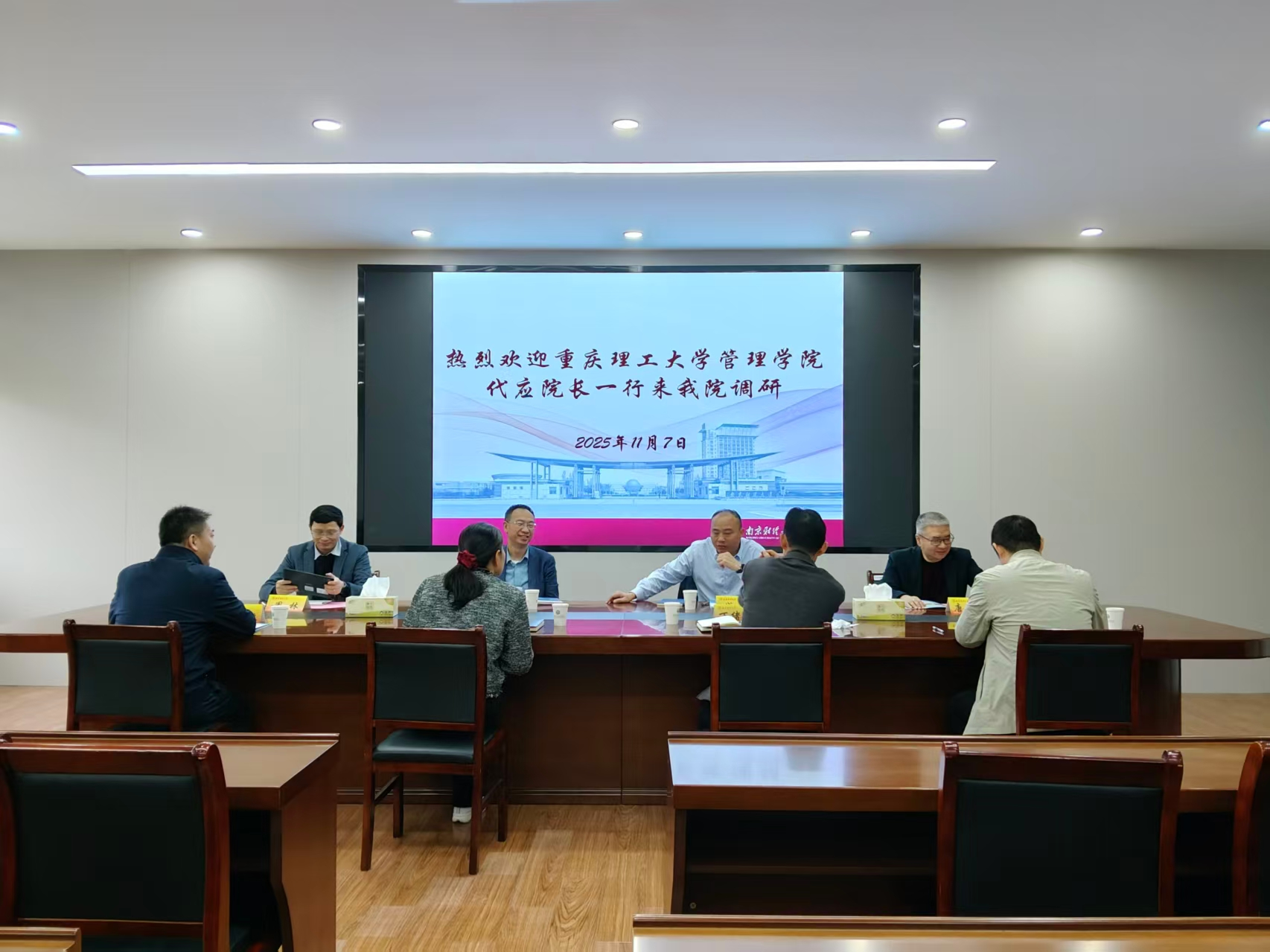 11月7日上午,重庆理工大学管理学院党委书记阎建明、院长代应,副院长唐德祥、周林一行来我院调研学科建设、学术团队及党建工作等情况,我院党委书记张杰、院长万绪才,副院长刘泽华、李召敏参加会议。