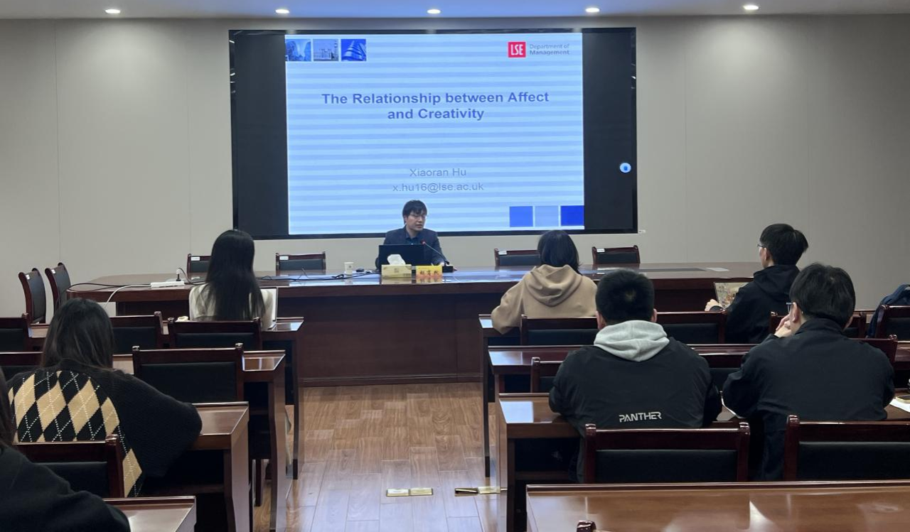 4月13日下午,应工商管理学院邀请,伦敦政治经济学院胡肖然教授在我校仙林校区德济楼408会议室作题为“创新创造力和情感情绪的关系”的学术讲座。讲座由工商管理学院副院长刘泽华主持,学院师生代表共同参加。