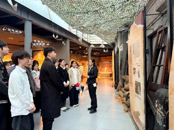 在纪念馆展厅,团员青年们在纪念馆讲解员的深情讲述中步入了那段烽火连天的岁月。展柜中泛黄的照片、斑驳的文物、字迹渐消的家书,都在无声地诉说着中华民族曾经的苦难与抗争。从“九一八事变”后中国空军的艰难起步与悲壮抵抗,到南京保卫战中血染长空的惨烈;从冯如、杨仙逸等航空先驱筚路蓝缕、矢志报国的开拓精神,到沈从慧、陈怀民等年轻飞行员视死如归、以身殉国的英勇壮举……每一段历史、每一个名字,都化作震撼心灵的强音。尤其是当听到陈怀民烈士在战机受损后,毅然放弃跳伞求生,转而驾机撞向敌机的瞬间,不少同学眼眶湿润。这不仅是战场上的抉择,更是“苟利国家生死以”的青春绝唱,让在场青年深刻体悟到何为“将最宝贵的生命献给祖国”,何为跨越时空的忠诚与担当。