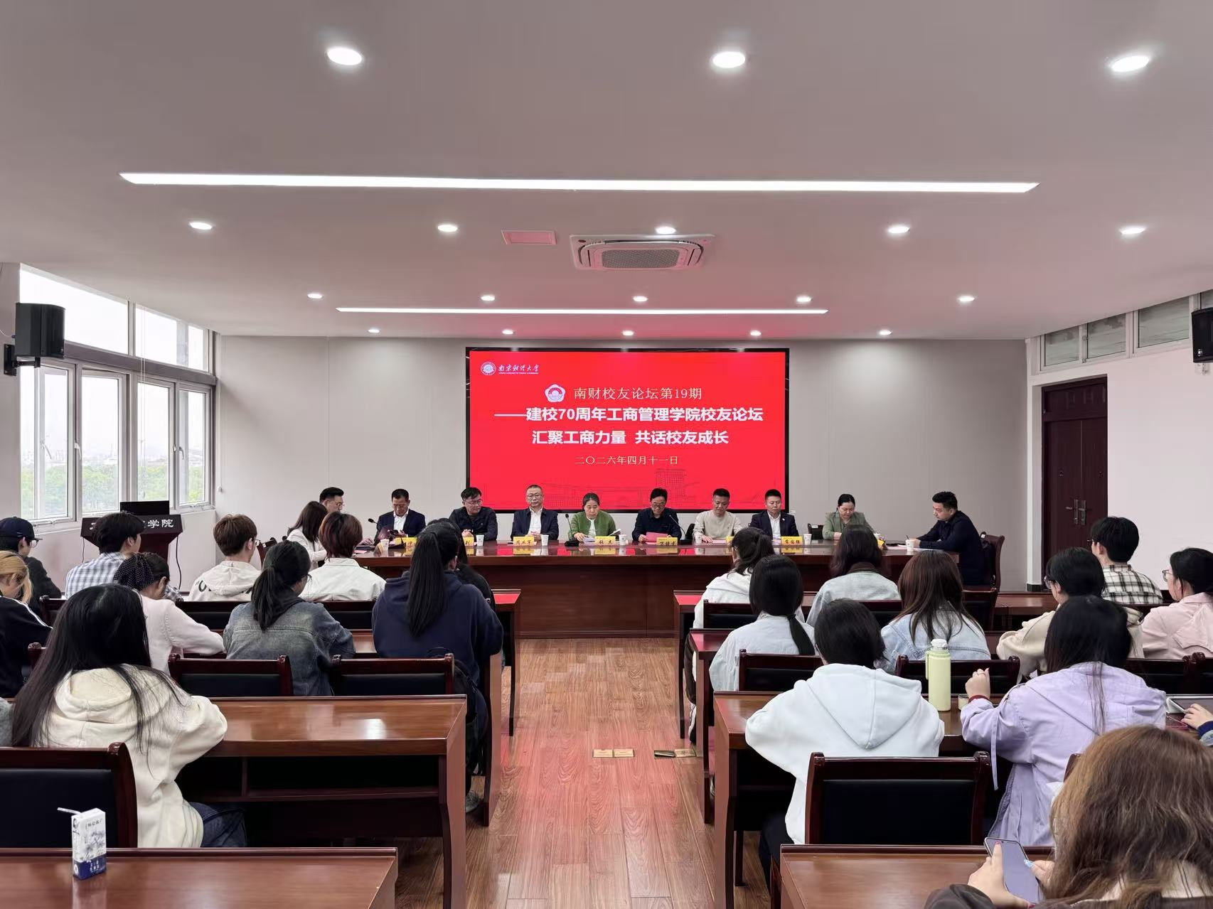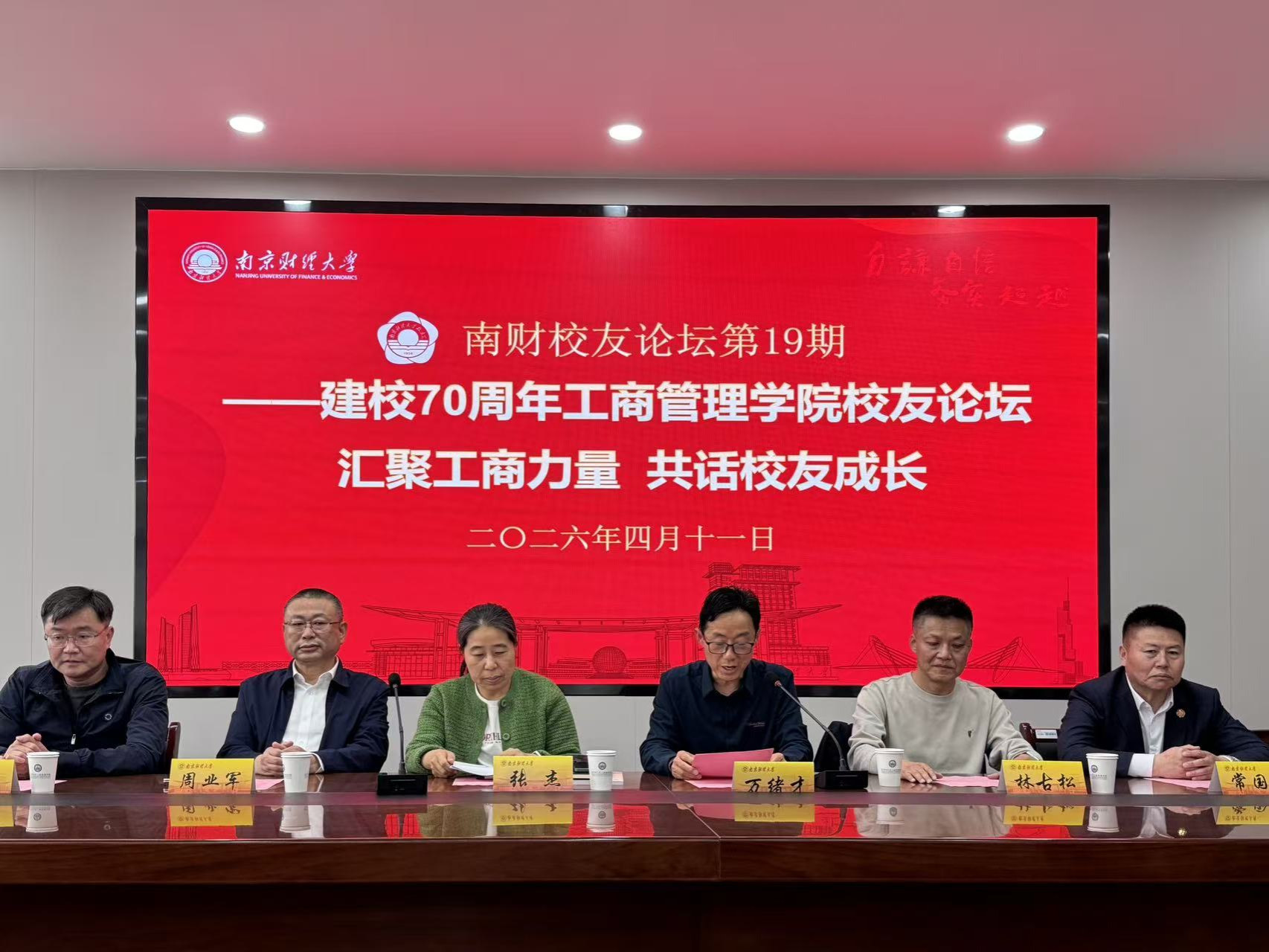 为喜迎南京财经大学建校70周年,凝聚校友力量、搭建交流平台、助力师生成长,4月11日下午,南财校友论坛第19期暨建校70周年工商管理学院校友论坛在德济楼408会议室举行。本次论坛以“汇聚工商力量,共话校友成长”为主题,学院领导、各地优秀校友代表齐聚一堂,共叙情谊、共商发展、共话未来。学院党委书记张杰、院长万绪才,校对外联络处副处长王冲等出席活动,企业管理86级、广西校友会副会长林古松,企业管理87级、吉林校友会副会长常国强,企业管理88级、广东校友会会长周业军,企业管理89级、宁波校友会会长翁列,企业管理93级、福建校友会常务副会长李锦华,人力资源管理01级、学院校友会秘书长邵瑾泽,工商管理05级、南通校友会秘书长鲁智胜等优秀校友代表应邀参会,活动由学院党委副书记尹海燕主持。