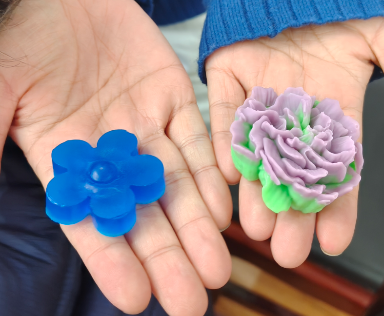 活动中,全体女教职工共同观看《榜样10》专题节目中,中国高铁装备制造领域杰出女性代表梁建英先进事迹短片。在香皂DIY环节,分工会主席冯玲老师细致讲解并示范了香皂的制作过程,女教师们兴致盎然,纷纷动手尝试。从融化皂基、调配色彩与香氛,到构思造型、点缀装饰,再到入模定型,每一步都倾注巧思与专注。一块块普通的皂基在老师们的巧手创意下,逐渐幻化为形态各异、色彩斑斓、香气宜人的精美手工作品,每一件都凝聚着对美好生活的热爱与理解。